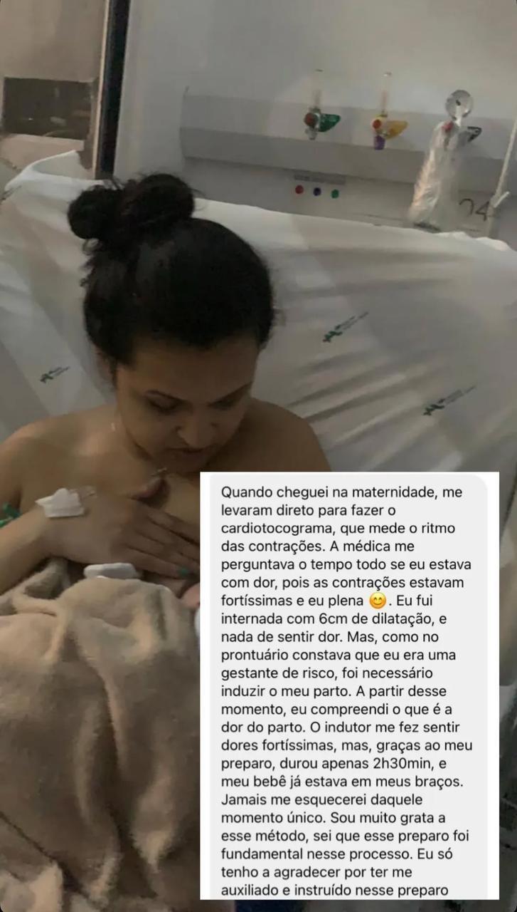Tive um parto normal rápido, sem sentir a dor das contrações, e o mais importante: eu estava presente, consciente e no controle.